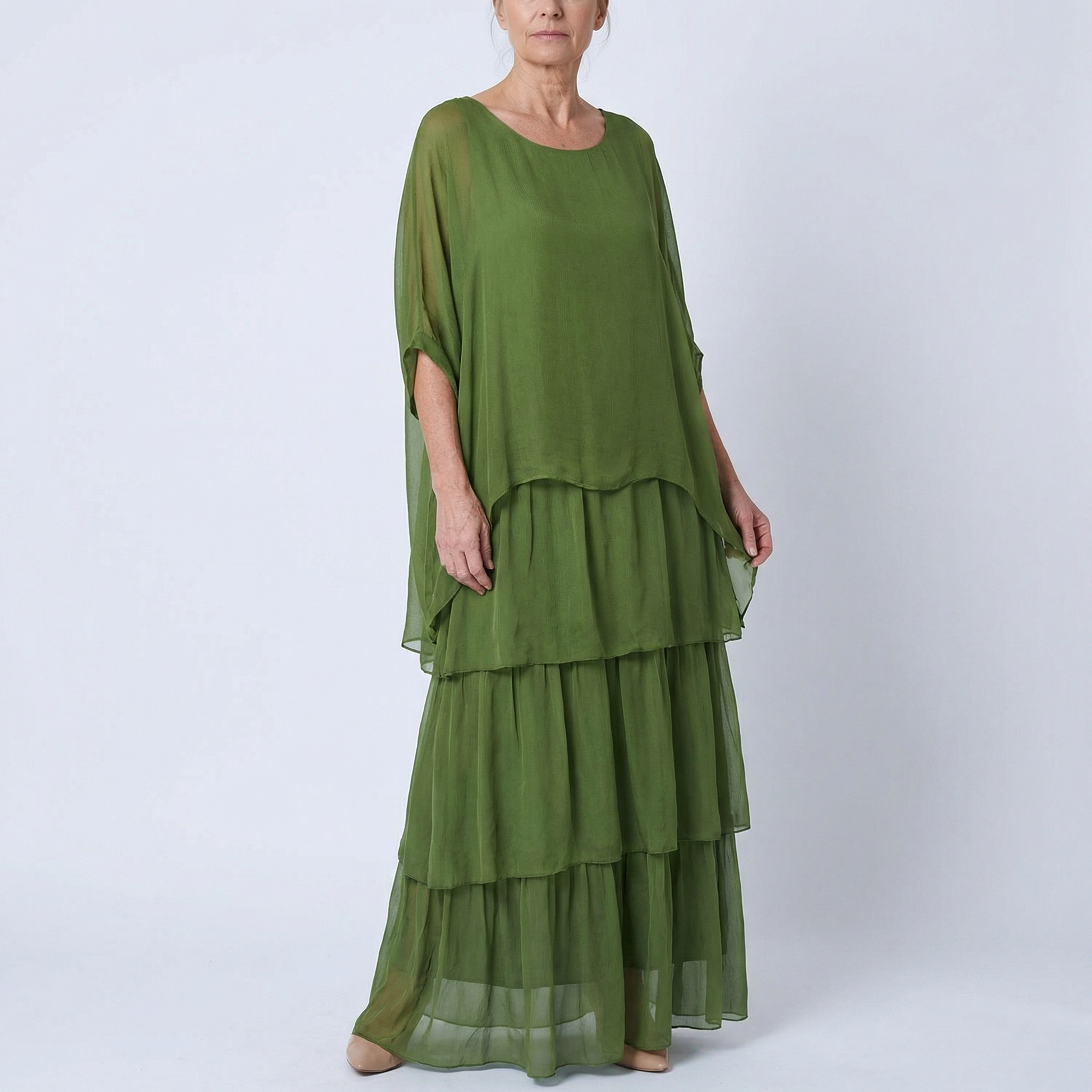 Embrace effortless elegance with this beautifully flowing maxi dress that moves gracefully with every step. Crafted in a soft, lightweight fabric with a flattering silhouette that skims the body without clinging, creating a naturally confident and refined look. Perfect for transitioning from sophisticated daytime events to enchanting evening occasions with ease.